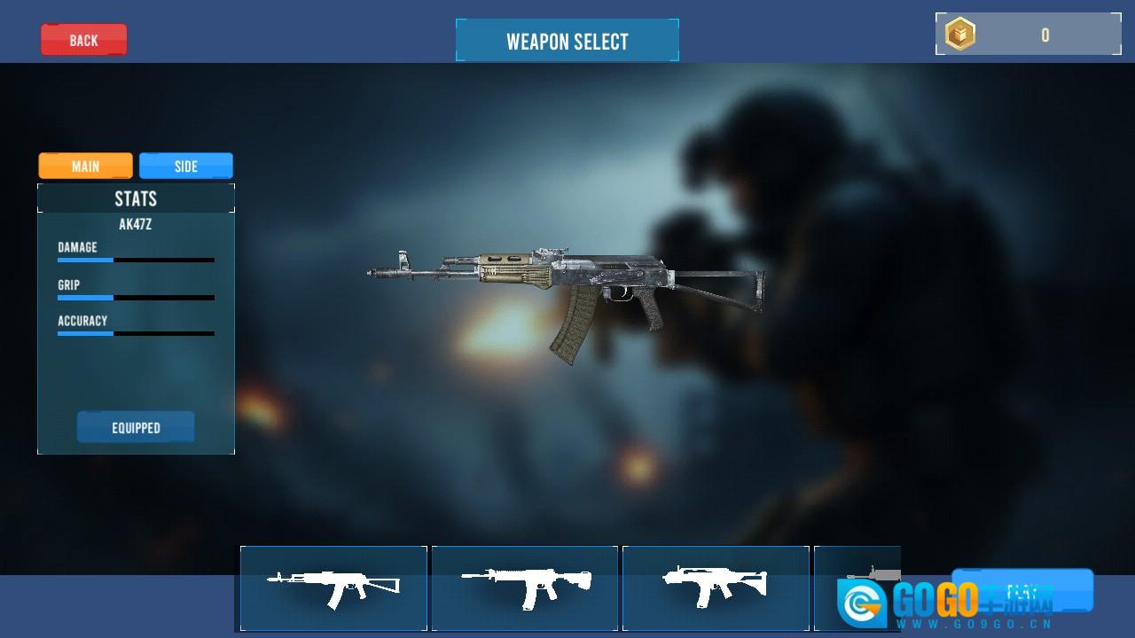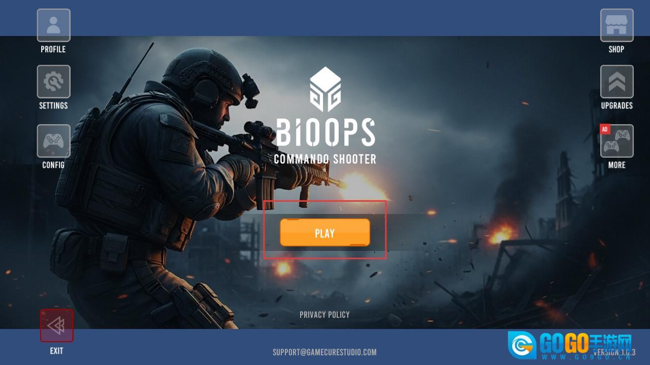 进入游戏后,主界面会呈现士兵持枪的画面,同时设有PROFILE、SETTINGS等功能选项,点击PLAY按钮即可开启射击战斗的旅程。