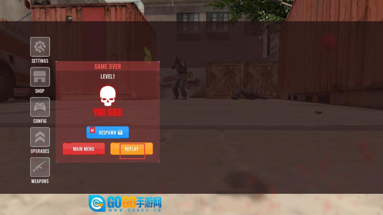 4、要是战斗没能获胜,就会弹出GAME OVER界面,上面会显示YOU DIED之类的文字,这时候点击REPLAY按钮,就能重新开启战斗,继续挑战自己。