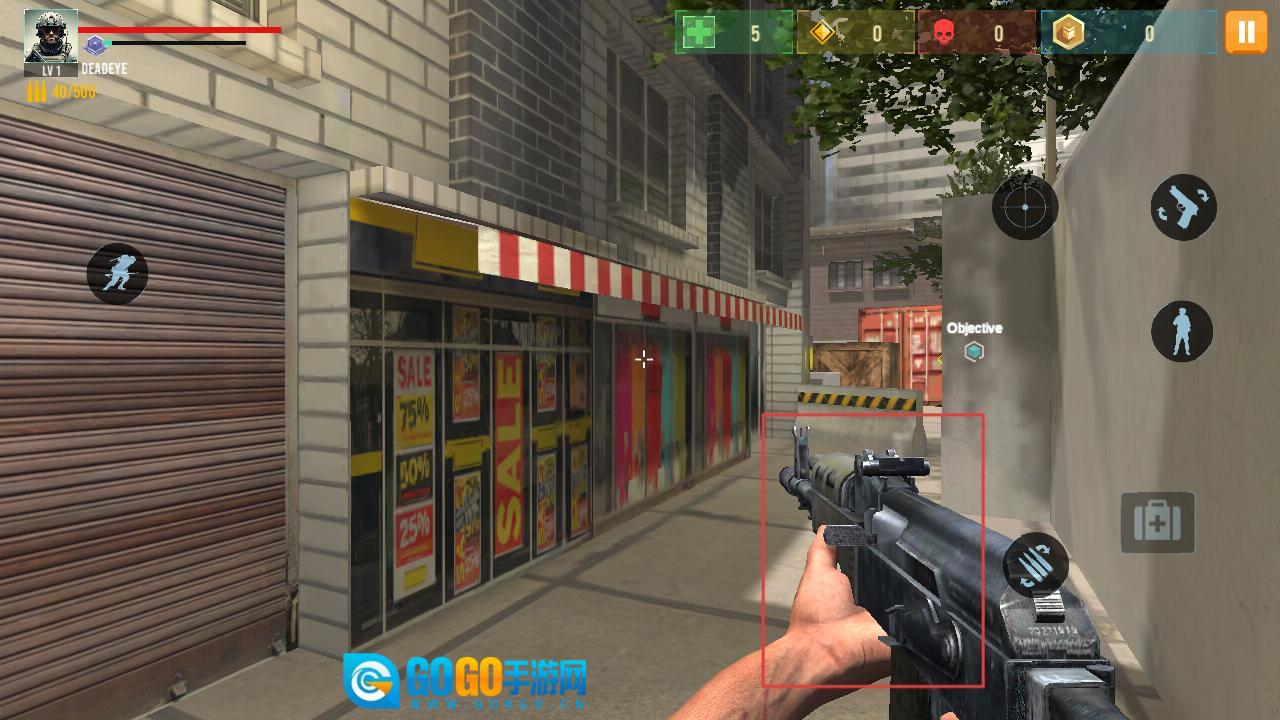 2、进入战斗场景后,手持枪械,在城市街道等环境里移动,借助界面操作,瞄准前方,随时准备应对即将出现的敌人。