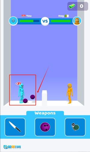 3、留意敌方角色头顶出现的“-31”伤害数字,借助多次投掷紫色球体来削减对手的生命值,与此同时要小心规避对方的攻击,率先把对方血条打空的一方获得胜利。