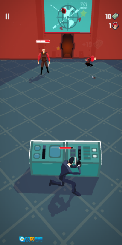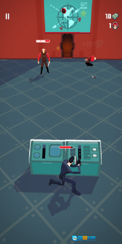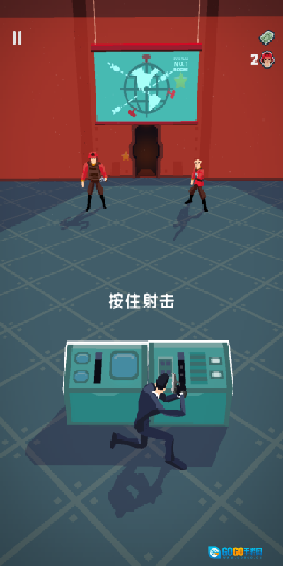 1、进入游戏后,你会看到对面有2个敌人,按住射击键就能快速将他们击杀。