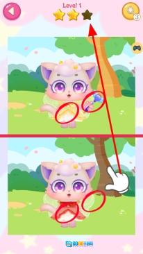 2、找茬不一样,在关卡中,仔细观察上下两张图片,找出它们之间不一样的地方,点击这些不同之处。