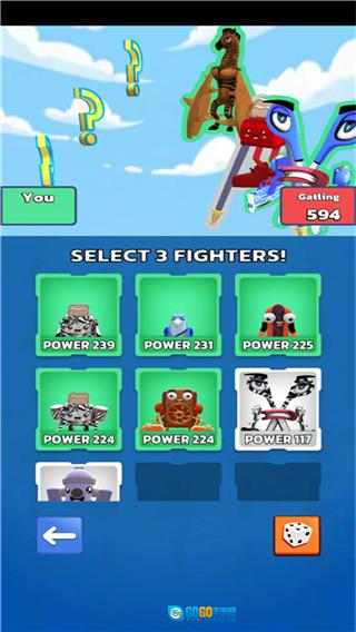 7、接下来需要挑选当前已融合的物种参与战斗,每次仅能选择三个,选好之后点击下方的fight按钮即可。