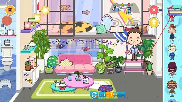 4、在完成人物、家具及物品的选择后,点击页面右上角的人物功能选项,从中挑选一个人物。