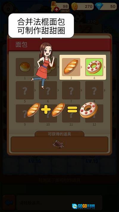 1、玩家将扮演面包店的店长,需要通过完成顾客的订单来获取金币。
