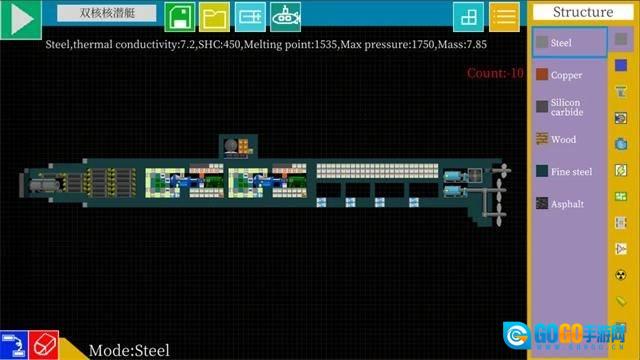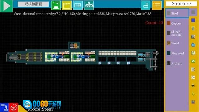 2、你可以自由设计你的潜艇,有多达几十种方块可供选择,助你打造出一艘完美的潜艇。