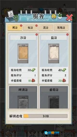 3、装修改造与个性化:玩家能够依据客人的喜好开展装修改造工作,营造出具有个性化特色的浴场环境。