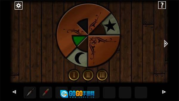 8、来到有旋转转盘的房间里,点击墙上的转盘,按照图示调整成对应的图案,之后后面的门就能打开了。