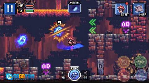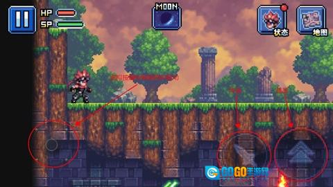 一、操作指南:进入关卡后,左侧的虚拟摇杆用于控制角色的移动方向;右侧的红色按钮是普通攻击/互动功能键,蓝色按钮则是跳跃/二段跳功能键。需要注意的是,跳跃能够触发平台穿越和空中连击,这是突破地形限制的重要手段。