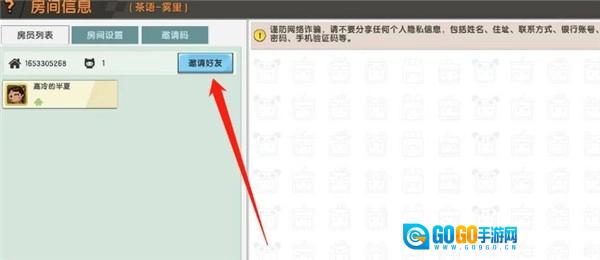 5、玩家在房间信息界面就能看到邀请好友的选项,具体如图所示。