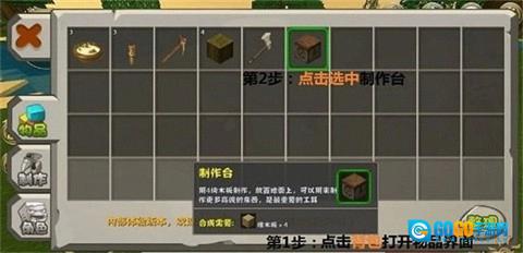 2.合成道具的必备物品,所有道具都能制作,先打造一个制作台。