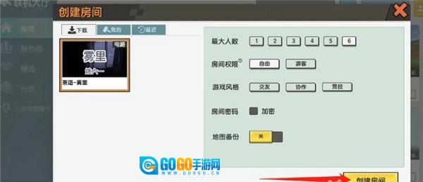 3、点击之后,设置好房间的各项信息,然后再次点击右下角的“创建房间”按钮,具体操作可参照图示。