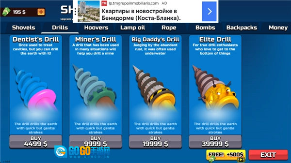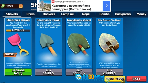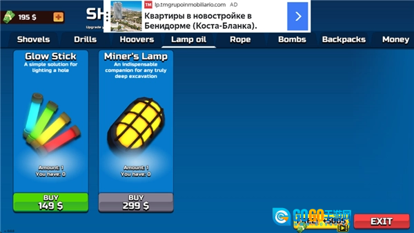 4、可以通过购买或升级铲子、钻头、炸弹之类的挖掘工具,来提升挖掘的效率。