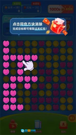 1、这里有大量红包可供领取,还有各式各样图案的方块能够消除。