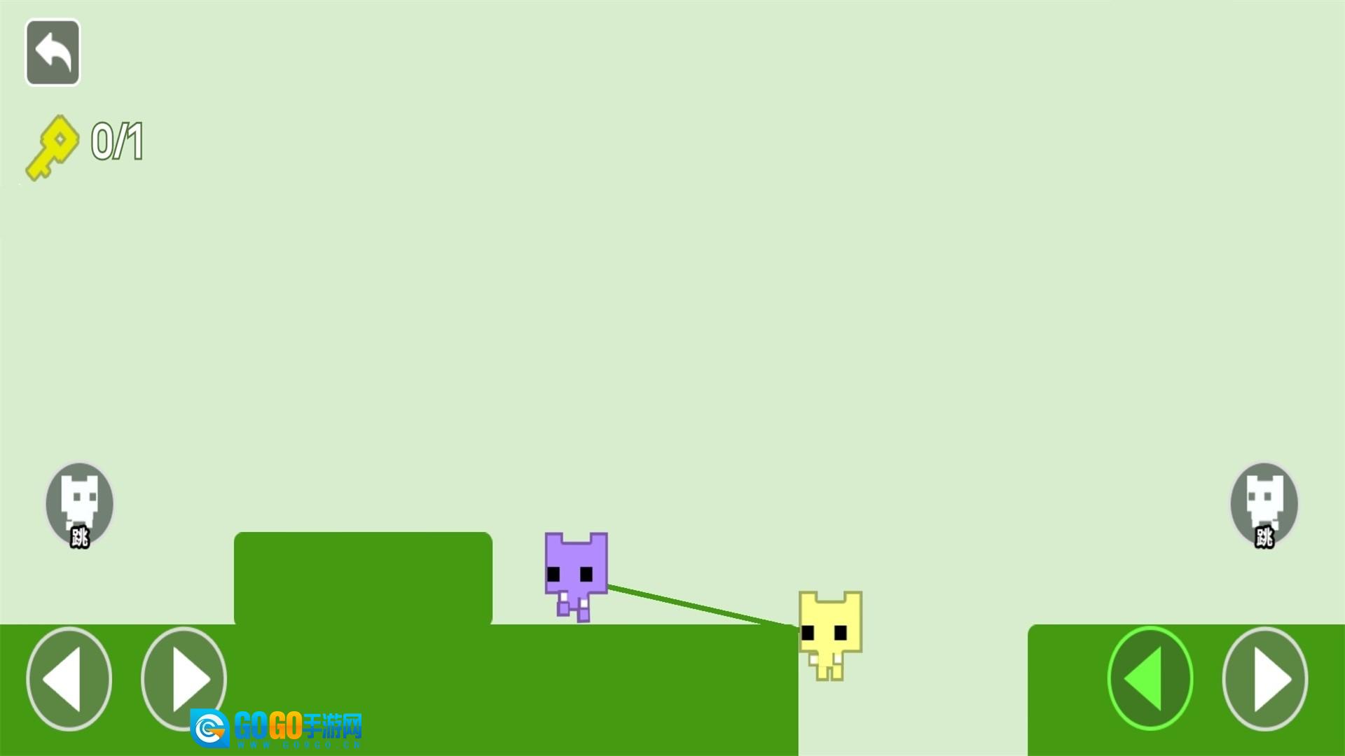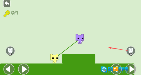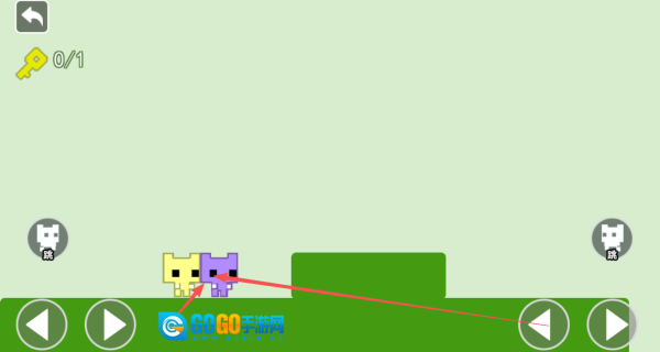 1、进入关卡后,左侧方向键用于操控蓝色角色移动,右侧方向键则会控制红色角色进行同步动作。