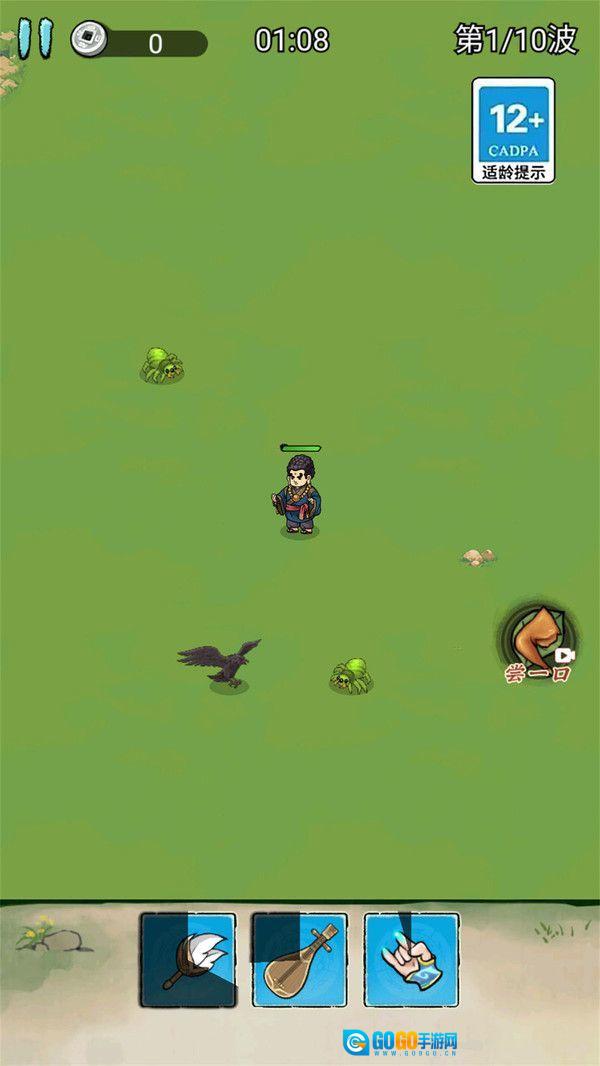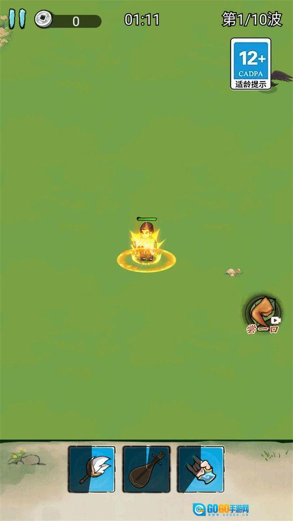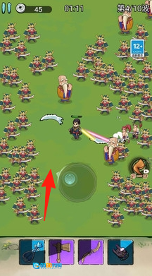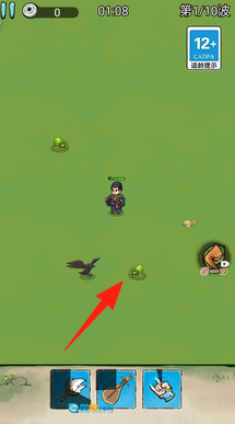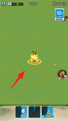 1、第一波时,操控角色靠近带有箭头标记的区域,【释放技能】,清理掉初始出现的怪物。