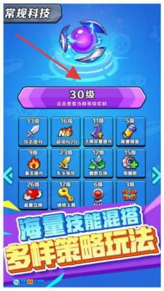 2、进入【常规科技】页面,点击【30级】选项领取奖励,解锁或升级对应的技能。