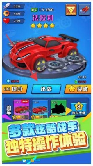 2、策略对战深度:借助重力感应模拟碰撞时的重心偏移,通过触屏操作释放锯齿技能,精准把握“攻击角度决定伤害倍率”的核心逻辑,利用预判对手技能冷却时间来完成反制,带来比传统赛车玩法更具硬核属性的战术博弈体验。