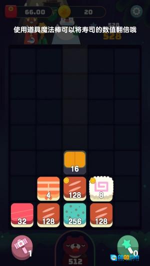 3、这款游戏别出心裁地把寿司元素和传统三消玩法结合起来,玩家得匹配数字相同的寿司方块来完成消除,给经典玩法增添了不少新鲜趣味。
