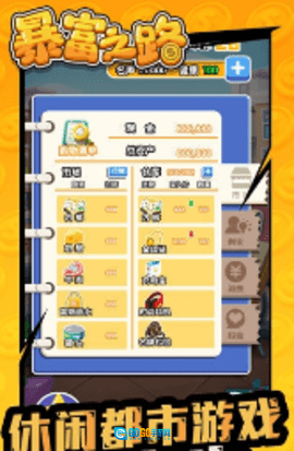 《暴富之路》属于模拟经营类型的休闲放置游戏,你将体验从一名普通平凡人,完成惊人逆袭并最终走向人生巅峰的过程。游戏采用绘画风格的画面,剧情内容诙谐幽默且跌宕起伏,能否达成目标全凭你的操作。你需要白手起家,利用第一笔启动资金开创一番大事业,还能在这款游戏里感受有钱人那种枯燥乏味的生活。