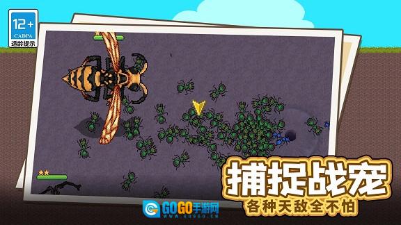 1、这款游戏配备了实时战斗机制,玩家能够即时操控蚂蚁军团与敌方势力进行战斗。
