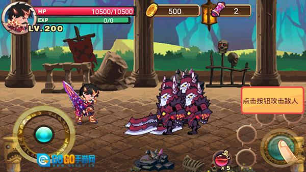 3、要是碰上不好对付的敌人,或是一下子出现很多敌人时,就能点击按钮来释放技能。