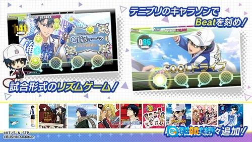 「比赛」界面融入了网球元素,网球王子的迷你球员会通过打网球的形式来演绎歌曲!玩家在游玩时,仿佛亲临网球场观看比赛、为王子们加油助威!而且在「比赛」过程中,玩家还有机会触发绚丽的背景特效,快让王子们展示出帅气的击球时刻吧!