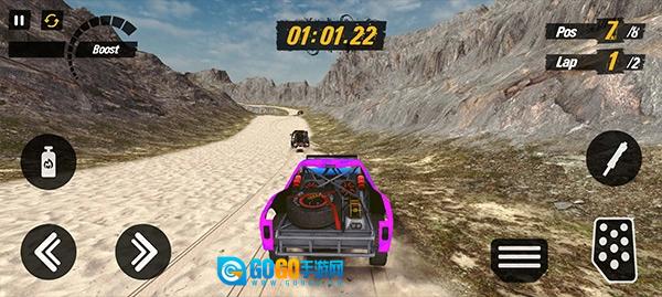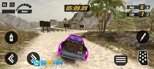 2、丛林山地间的追逐充满精彩与刺激,车手需在复杂多变的山地赛道上充分施展技术,依据前方道路状况和对手位置,灵活操控赛车。