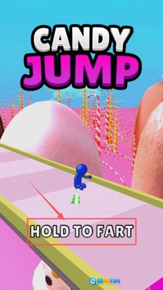 2. 蓄力起跳:按照“HOLD TO FART”的提示长按屏幕进行蓄力,松开屏幕后角色就会弹射起步。