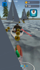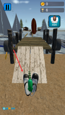 2、场景推进:操控绿色滑行器,沿着码头与水面的路径行进,收集沿途的金币。