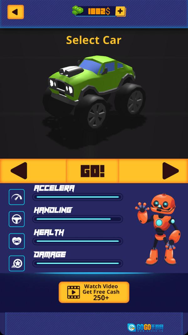 3、在“逐命亡车”里,通过收集金币来提升车辆等级,这样能增加车辆的血量以及撞击时的力度