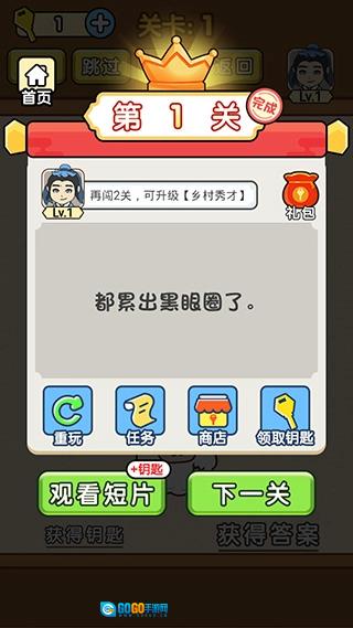1、全民烧脑游戏主要分为两大板块,完成对应的挑战就能晋升爵位,从最初的“敏而好学”起步,直至最终的“数一数二”,每个等级阶段都包含24个关卡,完成挑战后可以升官、购置房产和招揽贤才,逐步迈向人生的顶峰。