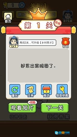 全民烧脑是一款休闲益智的特色解谜游戏,玩家进入游戏后将化身为一位进京赶考的贫穷书生,需要在每个关卡中不断挑战闯关,完成对应主题任务以获取奖励。在此过程中,角色能持续升级,从最初的敏而好学逐步成长为名列前茅,脚踏实地地走向人生巅峰。欢迎感兴趣的小伙伴来体验全民烧脑游戏!