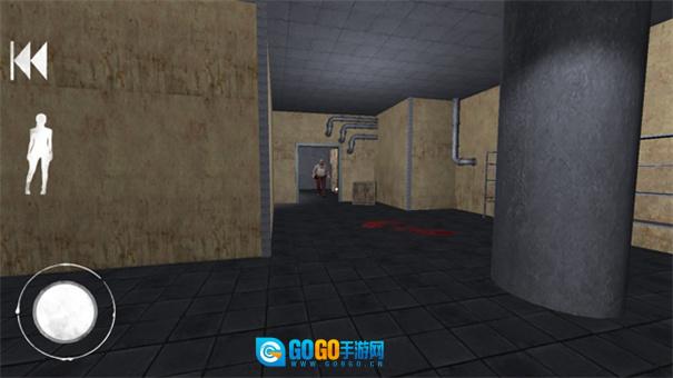 3、当遭遇危险时,点击左侧奔跑按钮快速移动,摆脱敌人的追击,在充满血迹和未知的房间中,谨慎探索以推进游戏进程。