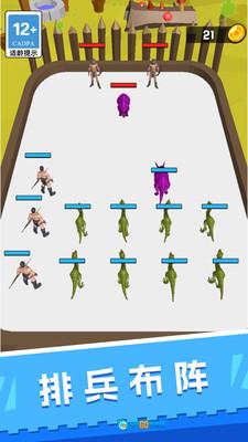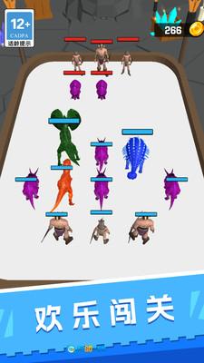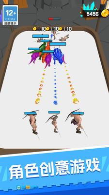 2、点击“开始游戏”按钮后,操控你的恐龙单位拿起弓箭对敌方单位发起攻击,开启自动战斗模式。