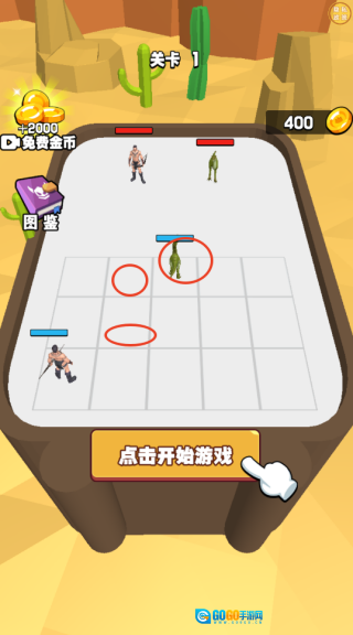 进入游戏后,你会来到战场环境中,点击操作购买弓箭来攻击对手,还能把角色拖动到前方的空位上完成布阵。