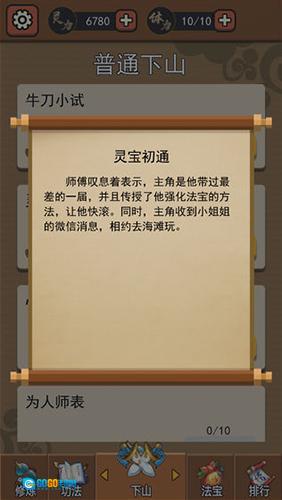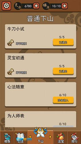 《我要下山》是一款修真题材的休闲放置游戏,它将国风仙侠的视觉风格与诙谐有趣的剧情相结合,玩家能借助挂机修炼、研习不同功法等途径来慢慢增进角色的修为。游戏的基础操作仅需单手就能完成,非常适合大家利用碎片化时间轻松体验。