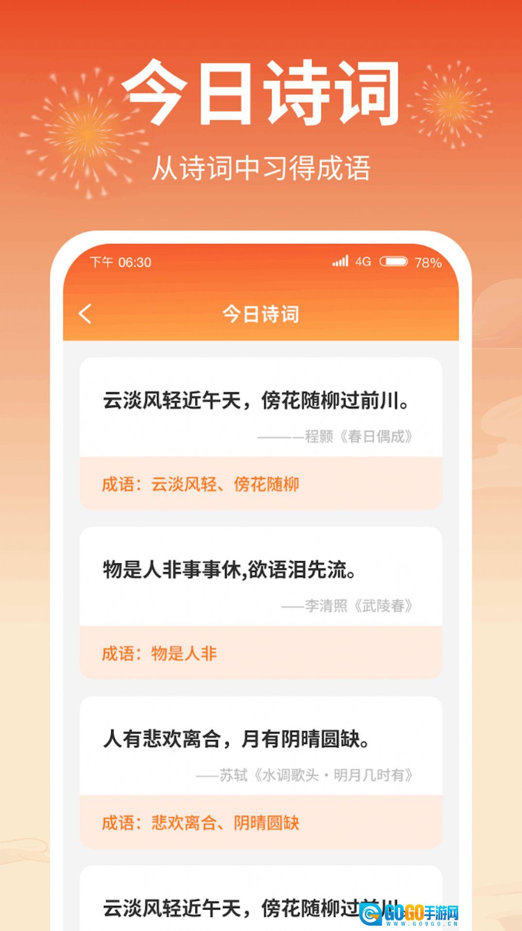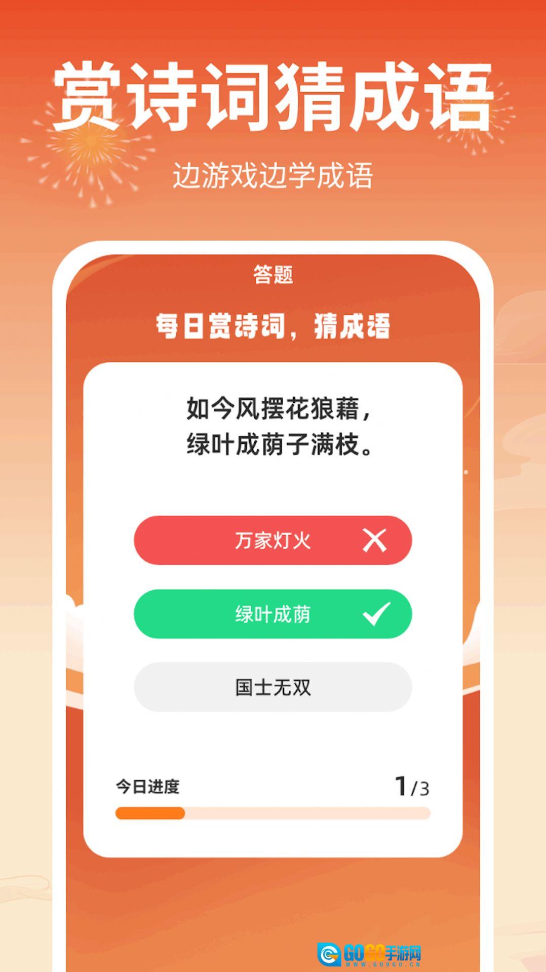3. 轻松休闲:简单易上手的操作搭配趣味十足又富有挑战性的成语题目,让成语答题郎成为闲暇时光里放松身心的优质选择。
