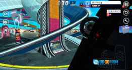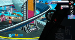 3、借助虚拟方向盘与特技按键操控赛车,实现加速、漂移以及空中翻转等动作。