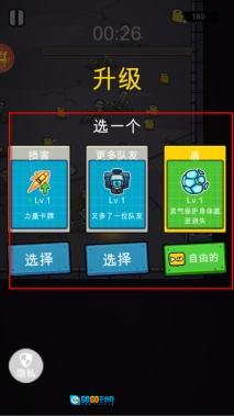战斗进行中会出现升级选项,你可以选择提升伤害的力量卡牌、增加队友数量或是获取护盾,选好之后就能为接下来的战斗提供助力。