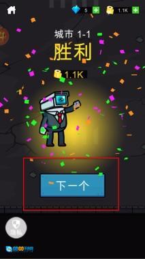 4、在成功战胜所有敌人后,屏幕会呈现胜利画面,这时点击“下一个”按钮,就能进入下一关继续进行挑战,从而逐步解锁更多新的战斗内容。