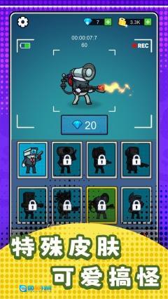 1、开启游戏后,操控角色对马桶人等敌人进行射击,战斗过程里需留意自身血量,通过灵活移动来躲避敌人攻击,并且要尽量消灭更多敌人以获取金币。
