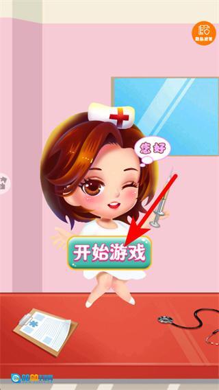 1、当你进入游戏界面后,找到那个有红色箭头指示的“开始游戏”按钮并点击它,这样就能进入医疗模拟的关卡场景了,这一步是启动游戏的关键操作。