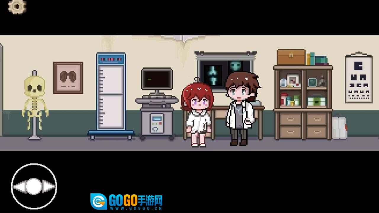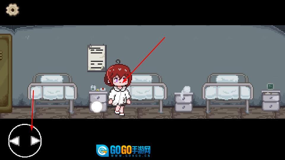 2、通过左下角的方向按钮来控制移动,在病房等场景中,根据提示与人物、物品进行互动,以此推动剧情发展,解锁新的内容。