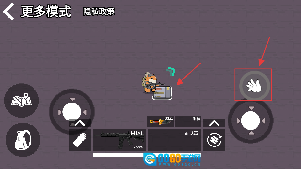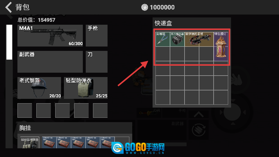 当靠近物资箱时,点击手形按钮进行交互以获取物资,同时在武器栏装备【M4A1】,为后续战斗提供助力。