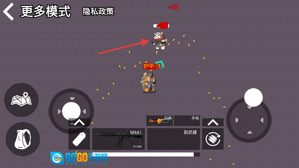 4、与敌人相遇时,对准目标进行射击,使用【M4A1】攻击来削减敌人的生命值,留意护甲数值的变化,通过灵活移动位置来维持战斗优势。