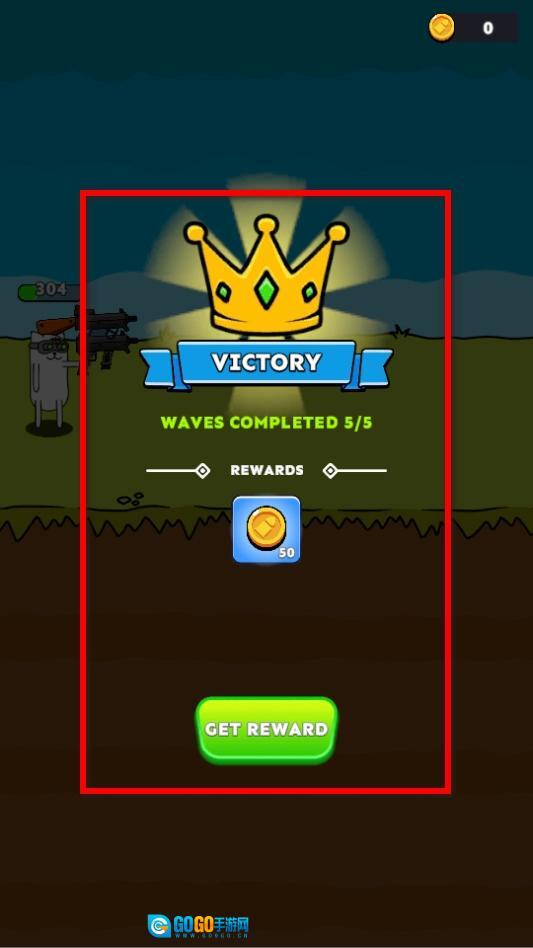 4、顺利打完所有波次的战斗后,就能得到胜利奖励,像金币之类的,点击领取奖励的按钮就能拿到这些奖励,这些奖励可以用来在之后购买枪械部件。