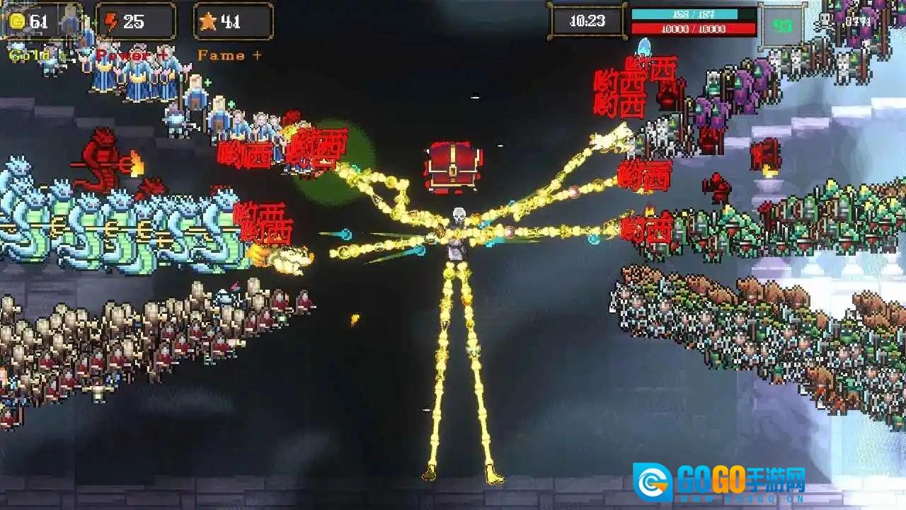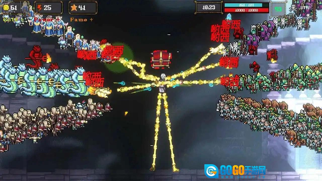 骷髅哟西i是一款休闲肉鸽游戏,采用经典的像素割草玩法,包含超多不同的玩法和肉鸽元素。在这里你可以自由体验不同的割草操作,享受超级解压的乐趣,开启十分不错的冒险挑战。你的目标是成为世界上最富有、最有权势的骷髅,体验刺激的战斗内容。