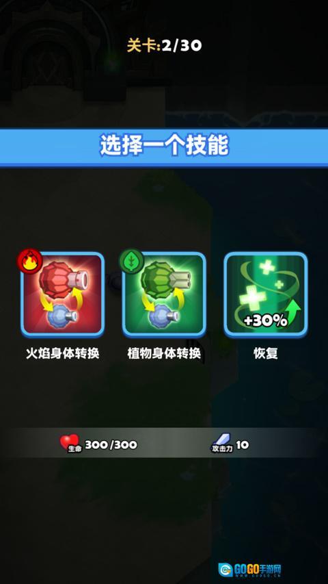 5、每通过一道关卡就能遇到宝箱,届时会获得一次三选一的选择机会,并且同系列的技能之间还存在组合玩法。
