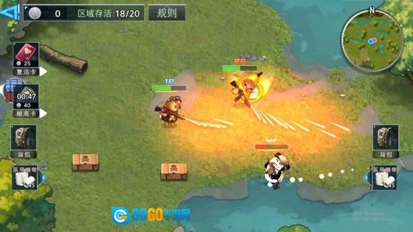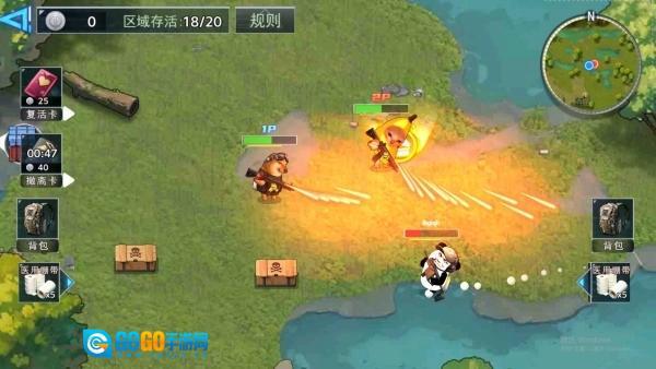 3、游戏中的地图里散布着随机宝箱,玩家有可能在开局时就捡到黄金加特林,也可能仅摸到拖鞋这类武器,这种不确定性提升了游戏的趣味性和挑战性。